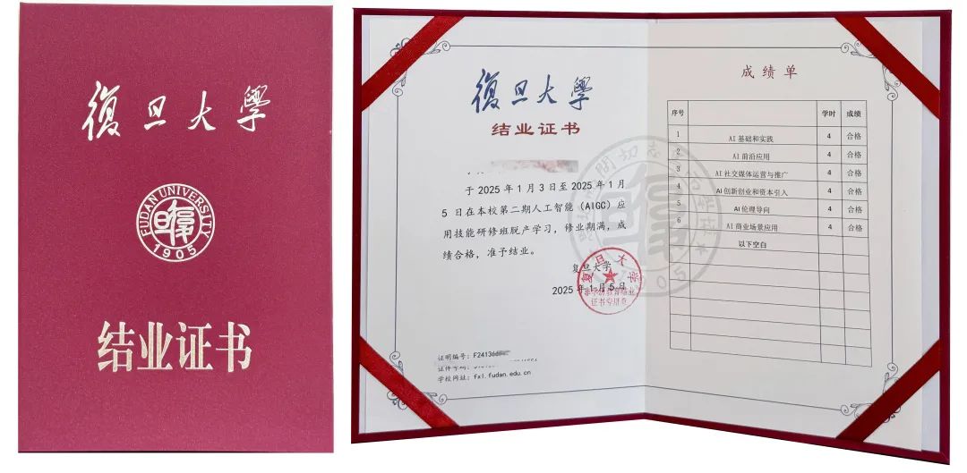 学员完成所有课时后,将获得复旦大学颁发的非学历教育结业证书。这不仅是对学员学习成果的认可,也为学员的个人简历增添含金量,显著提升其在职场中的竞争力与职业发展潜力。