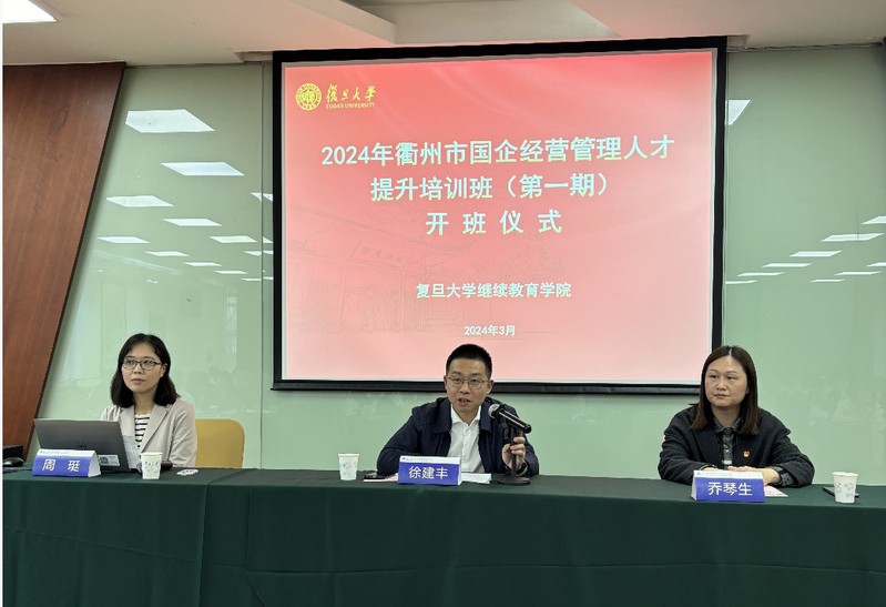 复旦大学继续教育学院党总支副书记乔琴生出席开班典礼,代表复旦大学对全体学员的到来表示热烈欢迎,介绍复旦大学的历史沿革和发展现状,以及中组部全国干部教育培训复旦大学基地的特色。衢州市国资委党委委员、副主任徐建丰作开班动员讲话,指出本次培训是衢州国资国企加快建设“三支队伍”建设、锻造国资国企高素质干部队伍的重要举措,希望每名学员要珍惜学习机会,严肃学风学纪,做到学有所获、学有所成,进一步提高素质、提升能力、提振精神,在全市国资国企改革攻坚深化提升年中当先锋、走前列、勇作为,更好服务推进国资国企高质量发展。
