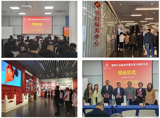 3月18日至24日,在铜梁区委组织部、铜梁区委党校的联合领导下,铜梁区金融发展中心召集全区45个部门共51名领导干部赴我校参加领导干部能力提升暨金融高质量发展和防范化解金融风险专题培训班,复旦大学继续教育学院副院长李辉、复旦大学继续教育学院非学历教育培训办公室项目主任王磊共同出席开班仪式。