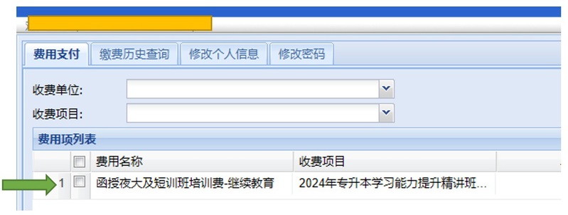 5、进入缴费页面,出现收费项目:2024年专升本学习能力提升精讲班