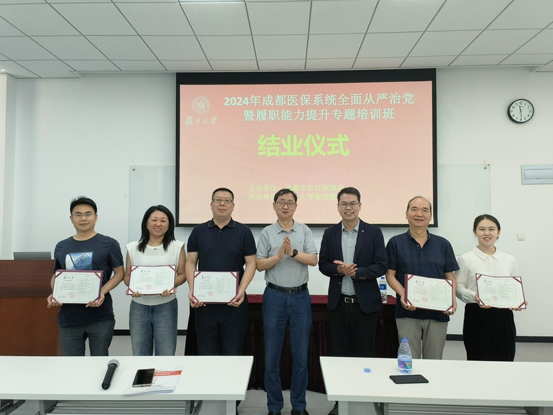 5 月 17 日下午培训班在复旦大学邯郸校区举行结业仪式。成都市医疗保障局党组成员、市医保事务中心主任王东青,复旦大学继续教育学院非学历教育培训办公室项目主任王磊出席结业仪式并作总结讲话,颁发结业证书。参训学员纷纷表示,通过此次培训,进一步增强了对全面从严治党战略部署的思想认识和责任担当,加深了对医保党建、基层党组织建设工作方法的思考和实践,坚定了对全面从严治党的决心、信心和廉洁自律的自觉性。