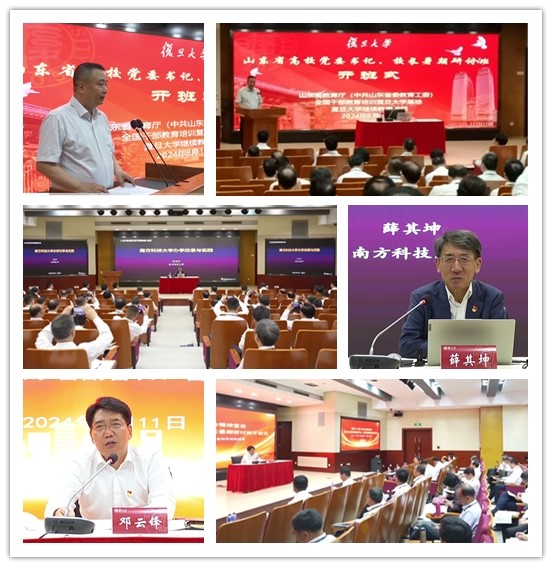 复旦大学领导高度重视此次交流活动,复旦大学校长金力、副校长周磊出席开班仪式。金力校长代表学校致辞欢迎来自山东的学员们,介绍复旦大学自强不息的创校精神及逾百年的发展历程,并期望他们收获发展新思路。中国科学院院士、南方科技大学党委副书记、校长薛其坤就南方科技大学办学改革与实践做开班报告,山东省副省长、省政府党组成员邓云峰做党的二十届三中全会精神宣讲暨开班动员讲话,山东省人民政府副秘书长刘斯杰出席开班式,山东省教育厅党组书记、厅长李明主持开班式。