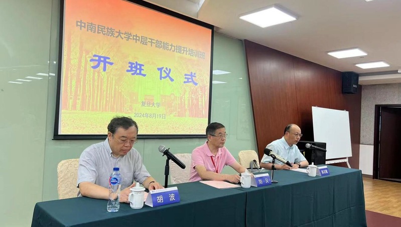 8 月19日—23日,中南民族大学中层干部能力提升研修班在我校顺利举办。19 日早,中南民族大学党委副书记、校长刘义,复旦大学党委常委、副校长陈志敏出席开班仪式。继续教育学院院长胡波主持开班式。