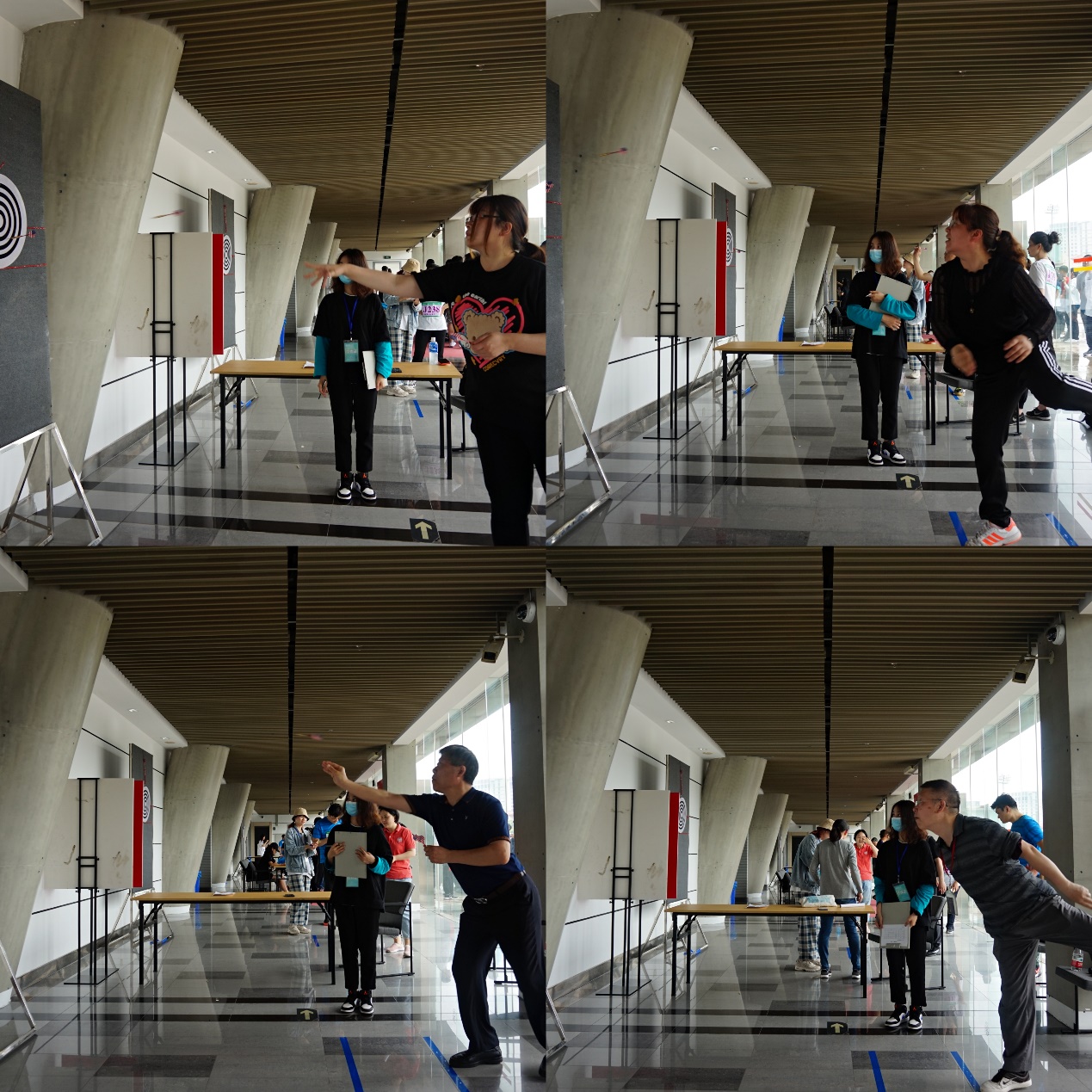 学院工会组织教职工参加投篮、足球射门、飞镖、蛟龙出海等4个项目的比赛,年龄范围涵盖60,70,80等全院各个年龄段教职工。虽各项比赛都无缘名次,但参赛老师们无惧风雨烈日,完成了报名的全部赛事,体现了不放弃、勇拼搏和团结协作的体育精神,达到了健康体魄、愉悦身心的参会目的。