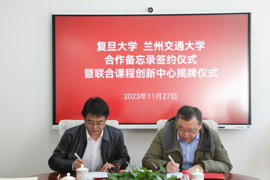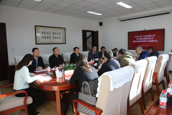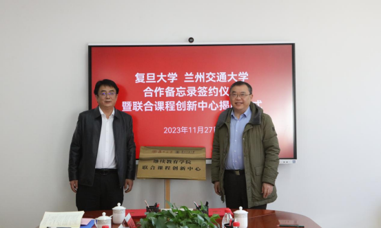 11月27日上午,我院与兰州交通大学继续教育学院在兰州交通大学行政楼会议室签订工作备忘,并举行“复旦大学继续教育学院—兰州交通大学继续教育学院联合课程创新中心”揭牌仪式。我院院长胡波、副院长葛宏波、项目主任张晓婵、复旦大学文科科研处副处长肖卫民,兰州交通大学校党委书记狄生奎、校党委(校长)办公室陈喜春、MBA教育中心张有道、继教院院长张浩玮、书记孙珍寿、副院长樊怡参加会议;兰州交通大学校党委常委、副校长陈光武主持仪式。